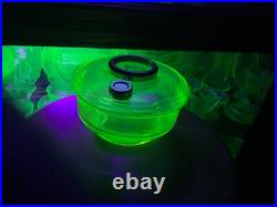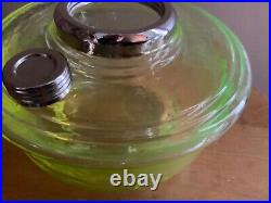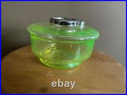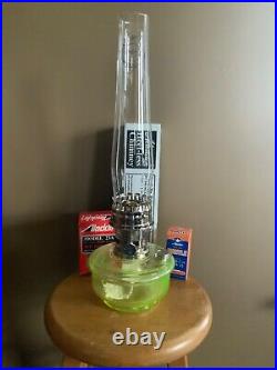 Aladdin Genie III Vaseline lamp Uranium Glass Oil Kerosene. This font has a beautiful glow under a black light. This is a great edition to any collection or on a shelf bye itself.